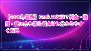 Grok AIとは何か、料金プラン、機能、メリット・デメリットをAI初心者向けに解説。X(旧Twitter)連携・DeepSearch・Grok 4.2など2026年最新情報を網羅。ChatGPT・Claude・Geminiとの違いも分かる完全ガイドです。